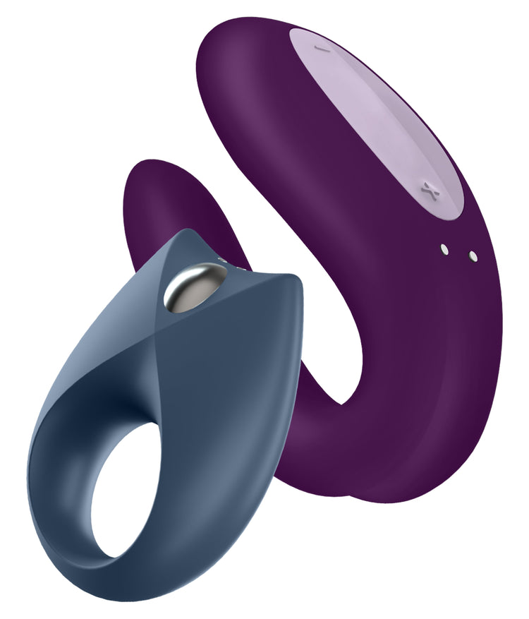 The Satisfyer Double Joy is one of the most popular twosome vibrators and has an impressive U-shaped design that offers intense vibrations in 2 motors. The smaller shaft is also inserted during lovemaking, stimulating both the G-spot  and the penis. The larger shaft of the twosome vibrator rests on the outside of the clitoris. The high-quality silicone feels particularly pleasant at the same time. The Satisfyer Royal One, a penis ring with a clitoral stimulator, is made of body-friendly silicone and pampers both partners, thanks to its blood  retention effect and powerful vibrations. It is simply pulled over the penis  and intensifies the erection while at the same time delaying ejaculation. The structured clitoral stimulator finds its pearl with every thrust and provides  additional stimulation through intense vibes. Both sexual wellness devices are  waterproof and can be taken into the shower, pool or bathtub without any worries.