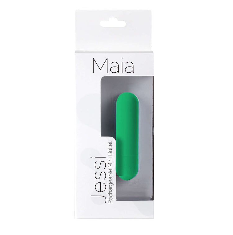 Pure Power are the only words necessary to describe the intensely powerful Maia Novelties Jessi. This 10-Function Super-Charged Mini-Bullet is soft and inviting with its sensually soft Silicone coating that is 100% body safe. Underneath lies a powerful motor that will super charge your session, time after time. The slender shape allows for easy handling and multiple uses while the end position control button allows for easy speed change. Discreet and petite, the Maia Novelties Jessi is always ready to travel. The Jessi can also be used for wet play with its 100% submersible design.