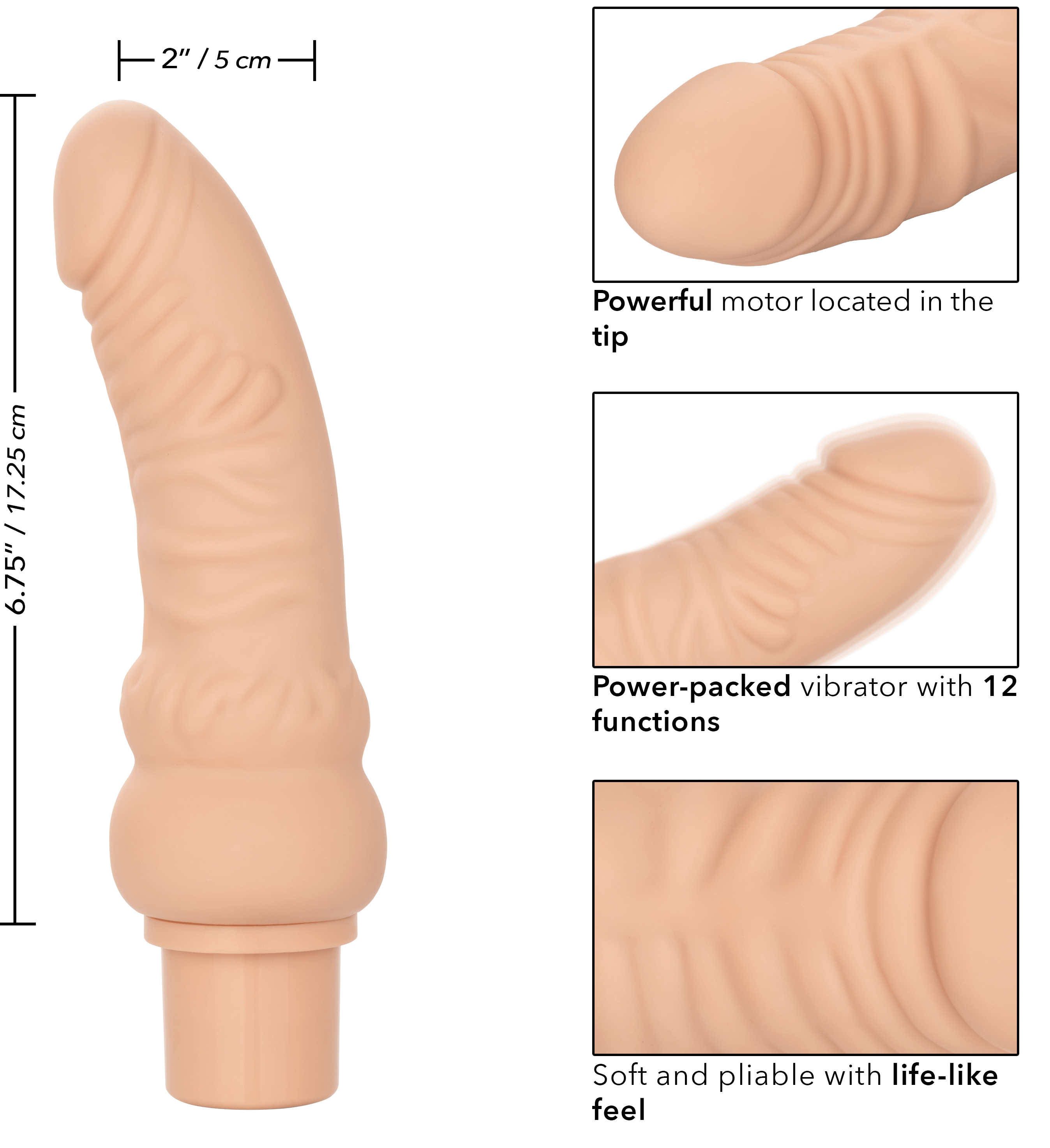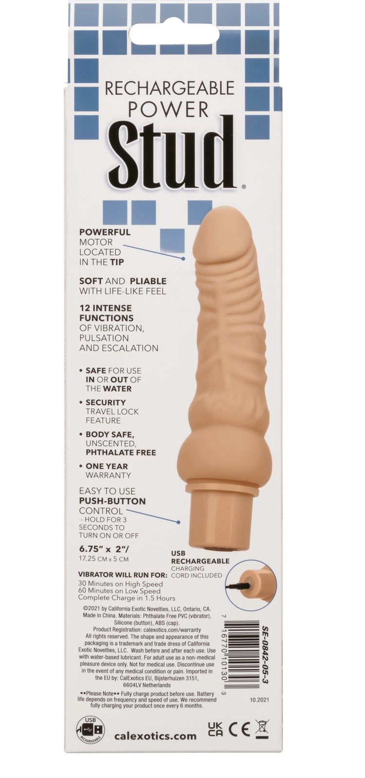 Thrust yourself towards earth-shaking pleasure with the Rumbling Rechargeable Power Stud Curvy. The power-packed vibrator features a flexible real-feel design and 12 functions of vibration. The flexible, yet rigid shaft and soft supple silicone delivers a truly realistic penetration experience. The powetful motor located in the tip of the massager delivers deep, rumbling vibrations. Whether you're taking a dip with a lover or indulging in a steamy solo session, look foward to up to 1 hour of waterproof vibration. Recharge pleasure and get back to playtime in only 1.5 hours with the provided USB cable. Embrace up to 1 hour of vibrations on low speed and 30 minutes on high speed. The flexible massager is made from a hygienically superior silicone. The body safe material is unscented and phthalate free to keep your most sensitive spots happy and healthy.