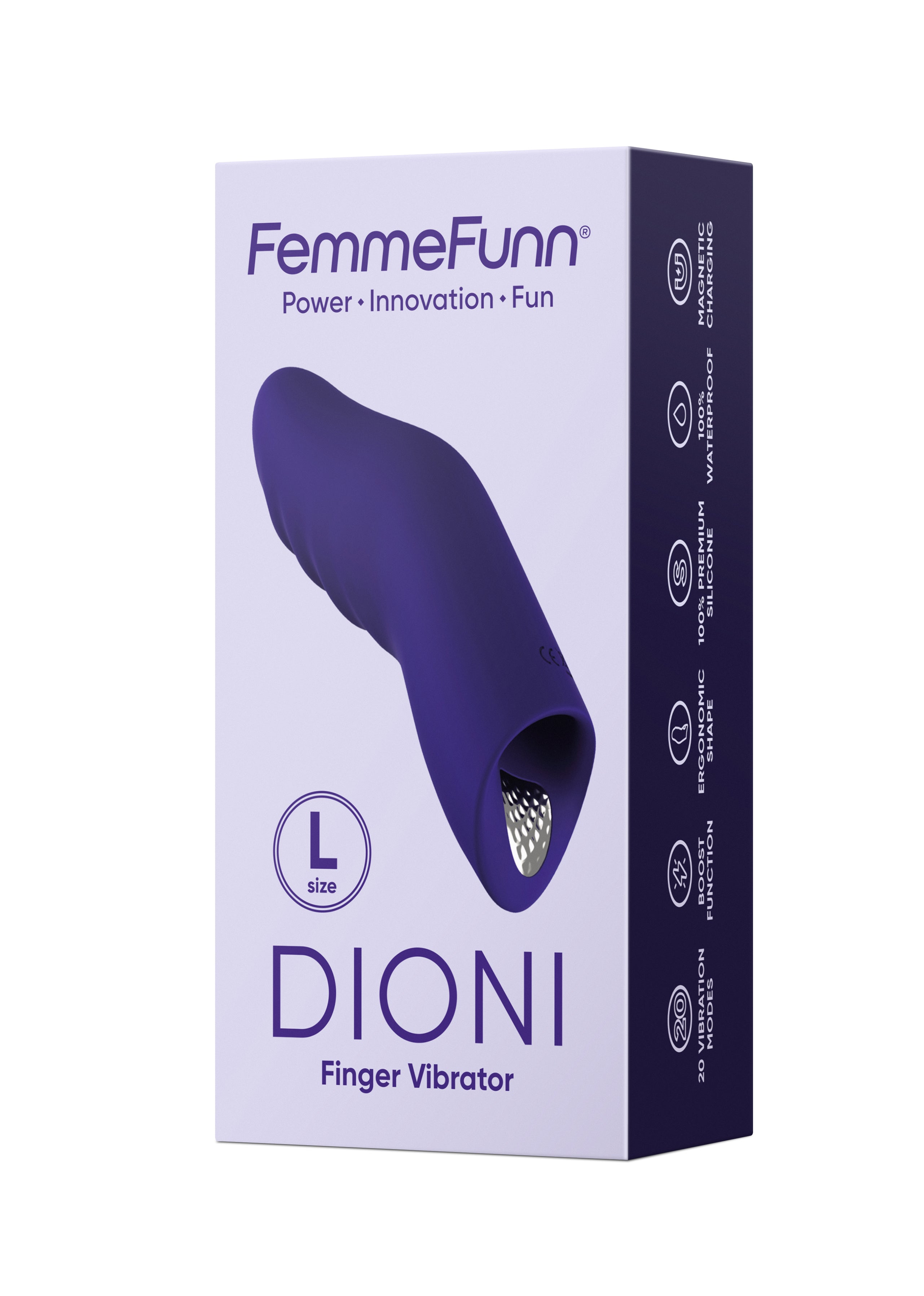 Power: equipped with a super powerful motor exclusive to FemmeFunn, Dioni delivers sensational performance. The 20 vibrating modes and the boost function help build the pleasure up.