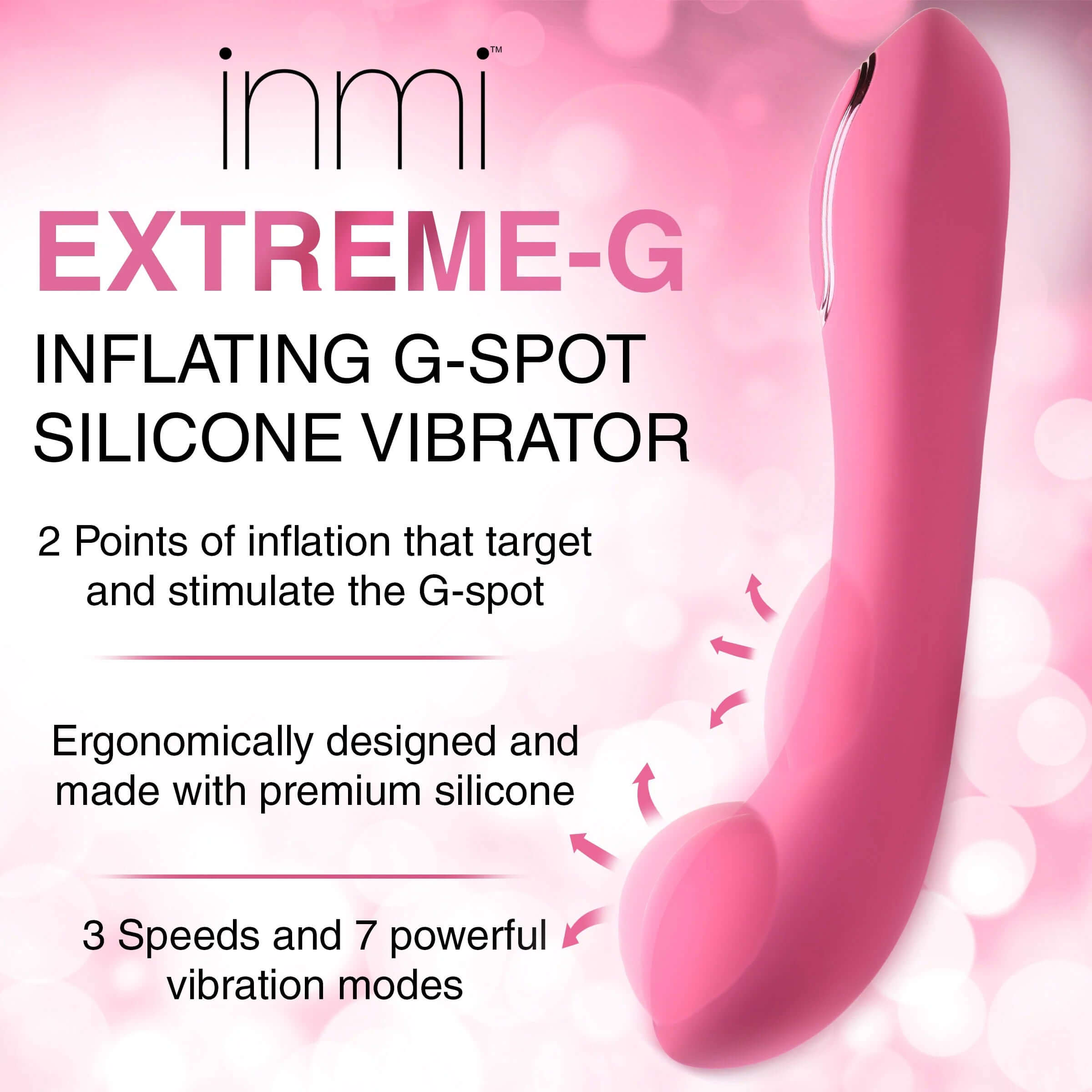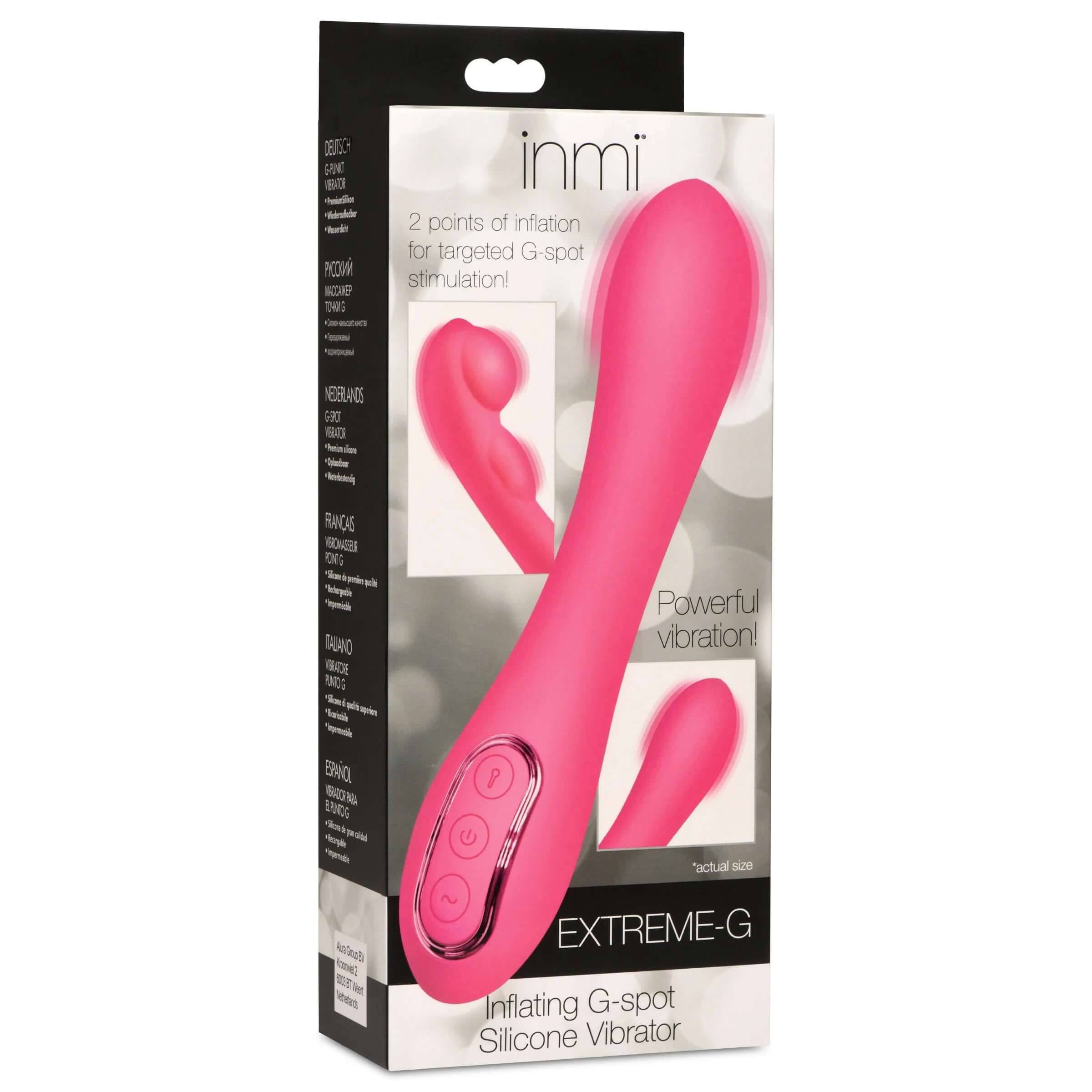 Experience targeted G-spot stimulation with a curved, inflatable vibrator! This toy already has a slight curve to the shaft which helps stimulate you where it counts. The added feature of two inflatable bulbs softly rubbing against your G-spot and adding sensual pleasure to each movement enhances the experience even more and gets you to that Big O even faster! Combine the added pressure from inflation with 3 speeds and 7 patterns of vibration that buzz you into a state of bliss! The silky smooth, phthalate-free, premium silicone is also perfect for deep massages that are body-safe and smooth. Use only water-based lubricants for best results! You can also take it in the shower or get it wet! It is rated IPX5 waterproof so it can handle low-pressure water jets, but do not submerge it underwater. Recharge after each use with the USB cable provided.