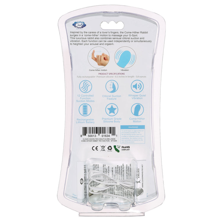 Inspired by the caress of a lover's fingers, the Come-Hither Rabbit surges in a "come-hither" motion to massage your G-Spot. This luxurious rabbit also combines sensual clitoral suction and vibration. Each function can be used independently or simultaneously to heighten your arousal and orgasm.