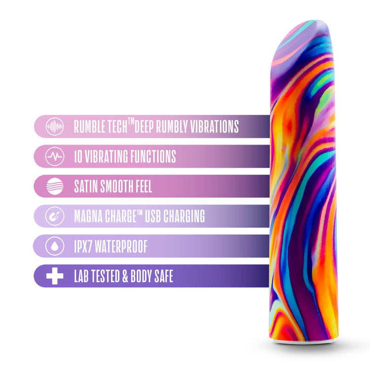 Are you ready for your newest addiction? The Limited Addiction Psyche Power Vibe is a colorful and sleek vibrator that delivers 10 deep, rumbly vibrations with the superior Rumble Tech motor! Cycle through 5 powerful speeds and 5 unique and thoughtfully curated patterns using the two button design to find your perfect pleasure preference. IPX7 submersible waterproof for bath and shower play and USB magnetic rechargeable, the Psyche Power Vibe is easy to clean and even easier to use. It has a smooth, sensual satin feel and it contains no phthalates, paraffins, latex, or fragrance.