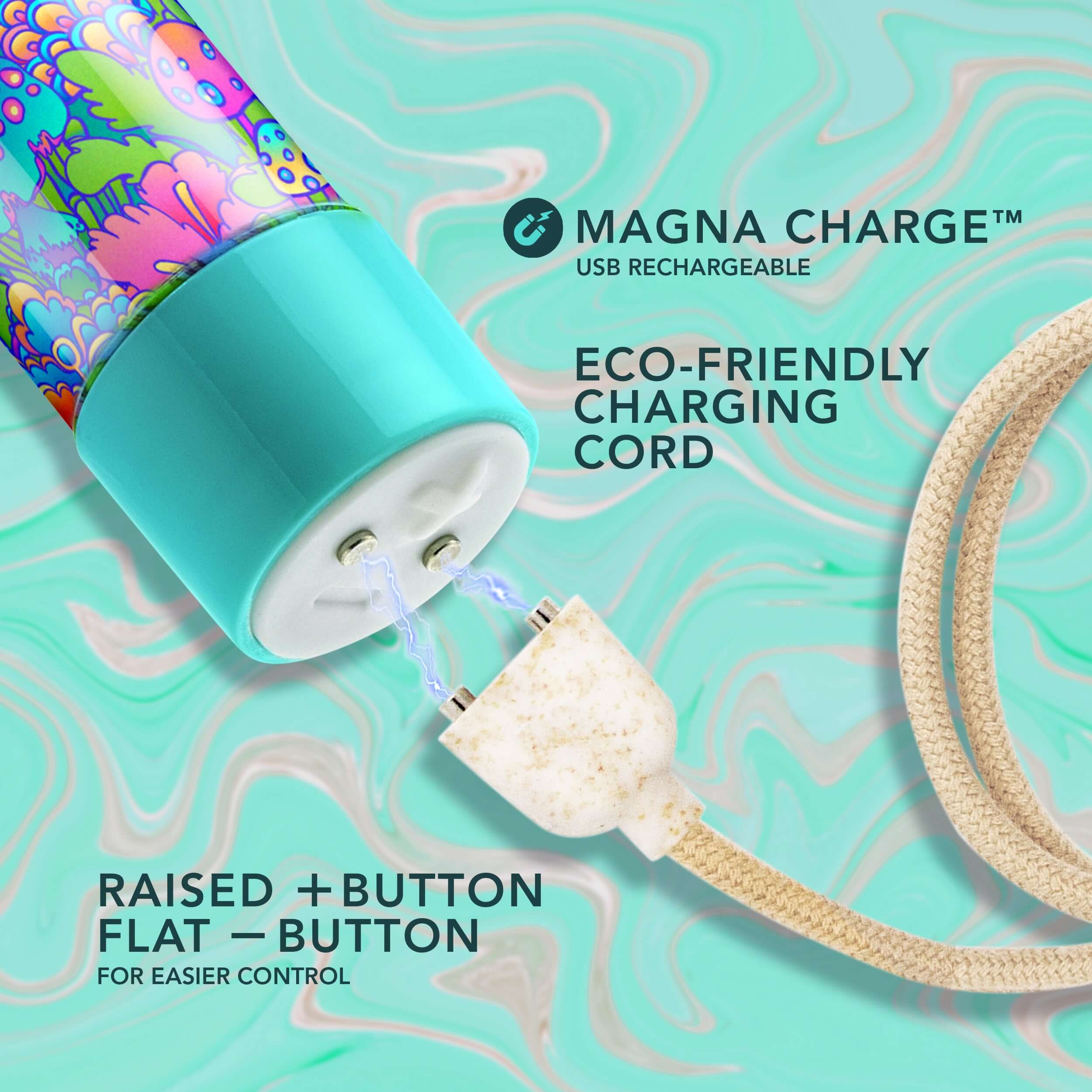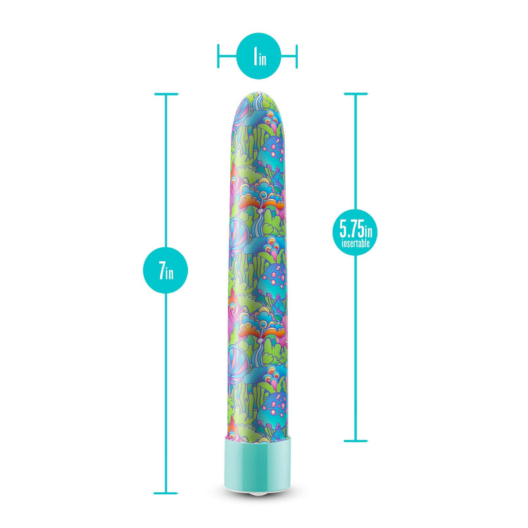 Introducing your newest addiction, Utopia! This slimline rechargeable g-spot vibe is here to take your desires on a journey to a whole new dimension. Crafted with a hypnotic aqua design, this lightweight 7" (17.78 cm) vibrator is your own personal massager made for sensual internal and external pleasure. Featuring 10 powerful RumbleTech vibrating settings, Utopia includes 5 advancing speeds and 5 unique patterns to choose from. Navigate your vibrations with ease, with raised two button control, so you can customize your sensations to perfection. With Magna Charge USB charging, you can easily power up your vibe to ensure it’s always ready for your next sesh. Utopia is IPX7 Waterproof, ready to accompany you in the bath or shower for more depths of aquatic pleasure. The Utopia is more than a sex toy, it's an invitation to your own personal paradise. Embrace your desires and discover the Utopia you've been longing for!