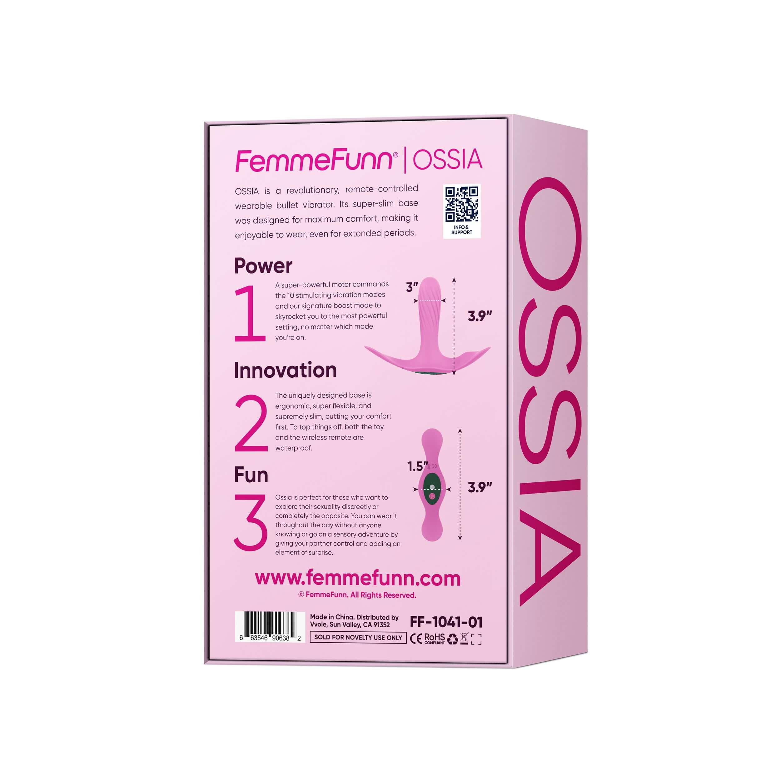 Ossia is a revolutionary, remote-controlled wearable bullet vibrator. Its super slim base was designed for maximum comfort, making it enjoyable to wear, even for extended periods.