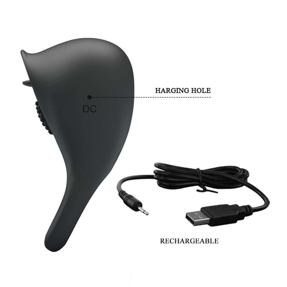 Experience stronger, harder erections with this silicone tickling tongues cock ring which simultaneously brings pleasure for her. The little tickler at the top to ensure that it will hit her highly sensitive clit. Made from high-quality silicone, this ring is soft and silky to touch and suitable for use with water-based lubricant. Easily controlled by a button on the top, this accessory will become one of your favourite bedtime toys.