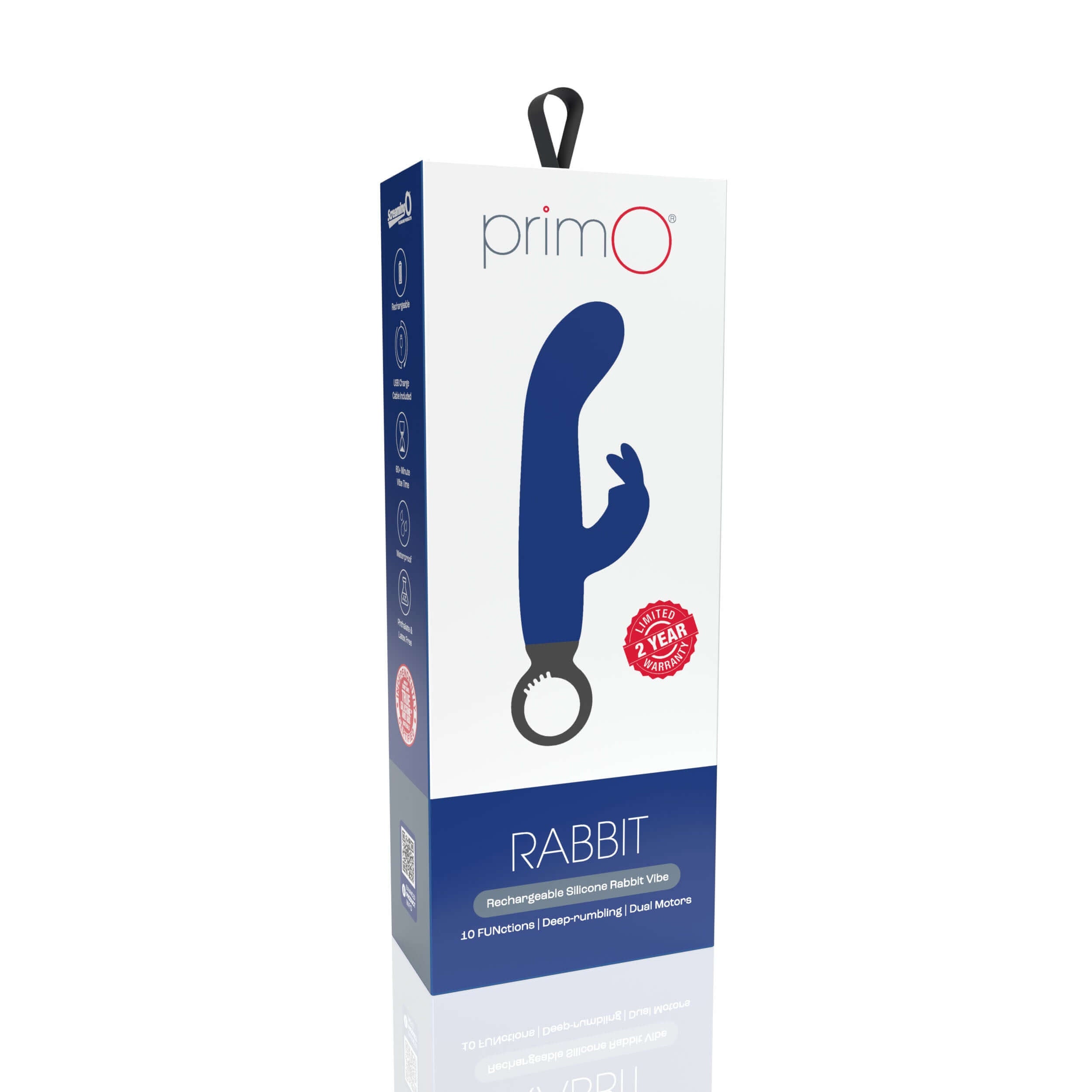 Crafted from buttery-soft True Silicone, the Screaming O PrimO Rabbit has an insertable length of 4.5” (11.43 cm) and a generous 4.25” (10.79 cm) girth, which fits most bodies comfortably. The 5+5 motor delivers 5 steady vibration speeds and 5 pulsation patterns at the touch of a button, and the iconic ‘O' crafted from ABS allows users to easily grip and position the vibe just where it feels best. The PrimO Rabbit runs for 60 minutes on a single charge and comes with a USB charging cable.