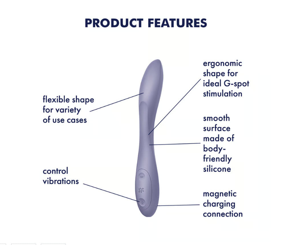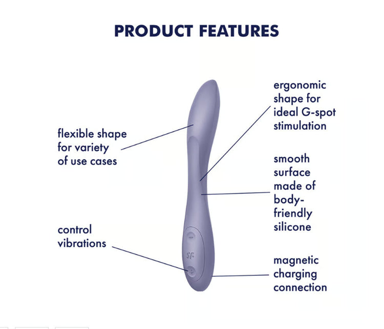 This vibrator will bend itself for your pleasure: The flexible neck of the Satisfyer G-Spot Flex 2 allows you to use it in many ways and adjust the stimulation angle individually to your body. Thanks to the internal wire, you can transform it from a G-spot vibrator to a rabbit vibrator, stimulating the clitoris and G-spot at the same time with deep vibrations from two powerful motors. The flat shaft with a rounded tip is mimics the feeling of a tongue pleasuring you leaving no desire unfulfilled….