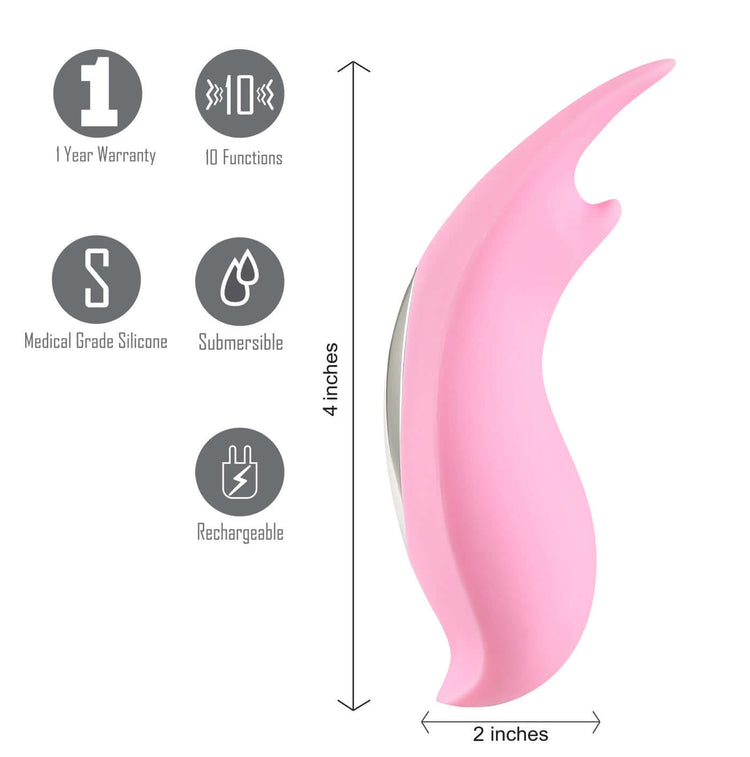 Lay down and lay it on with Sera by Maia Novelties. The unique ergonomic shape of Sera allows you to lay Sera right where you need it. Sera features 10 functions of vibration to take your lay-on experience from Mild to Wild. Sera is fully rechargeable and utilizes a textured design to stimulate and please from every angle. Sera is made from 100% body safe, silky soft and is 100% submersible and can be used for wet fun as well.