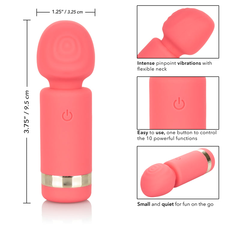 Slip the tickling Slay™ Exciter into your purse or handbag for knee-shaking pleasure wherever you go. The mini wand massager fits between your fingers to let you deliver pinpoint tantalization and thrill with flexible vibrations. Get playful while you flicker through 10 indulgent vibration, pulsation and escalation functions with the easy-touch control button. The ultra-plush silicone and wide flexible head are great for exploring sensual sweet spots and intimate pleasure points with ease.