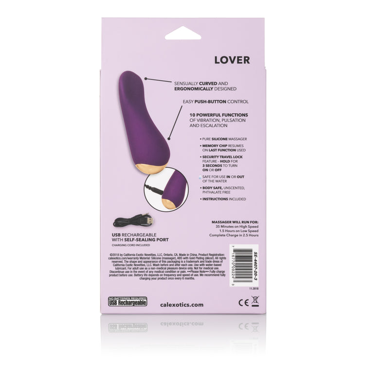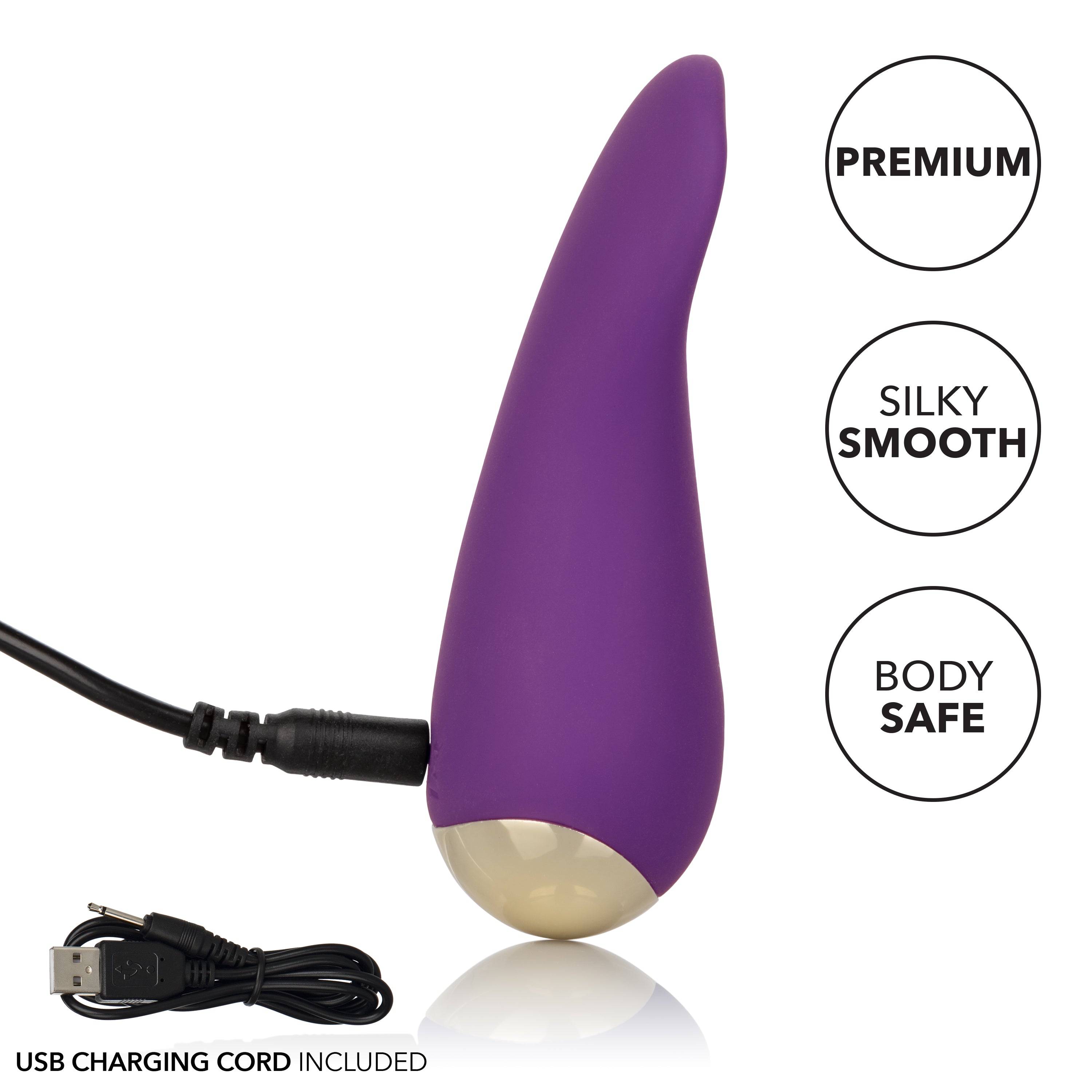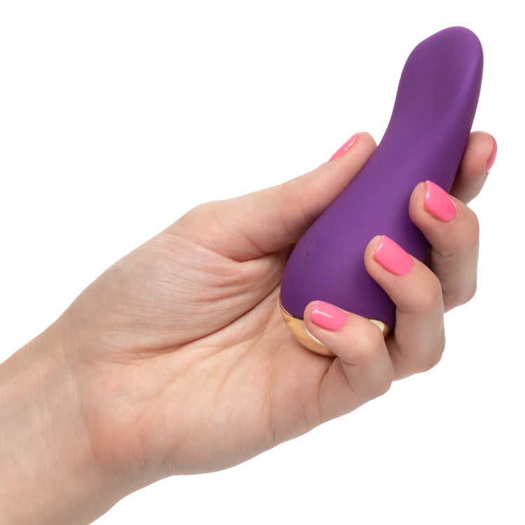 Slip the tickling Slay™ Lover into your purse or handbag for knee-shaking pleasure wherever you go. The curved massager fits between your fingers to let you deliver pinpoint tantalization and thrill with contoured vibrations. Get playful while you flicker through 10 indulgent vibration, pulsation, and escalation functions with the easy-touch control button. Effortlessly control pure pleasure with an easy-touch silicone button and hold for 3 seconds to turn on or off.
