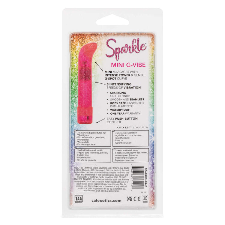 Indulge in dazzling pleasure with the Sparkle Mini G Vibe, a sleek mini G massager and 3 speeds of vibration. With an easy-to-use button and waterproof design, this is an erotic toy box must-have for beginners and erotic adventurers alike. This high-powered massager is created with a sleek, seamless body and gently curved tip to let you effortlessly control stimulation.