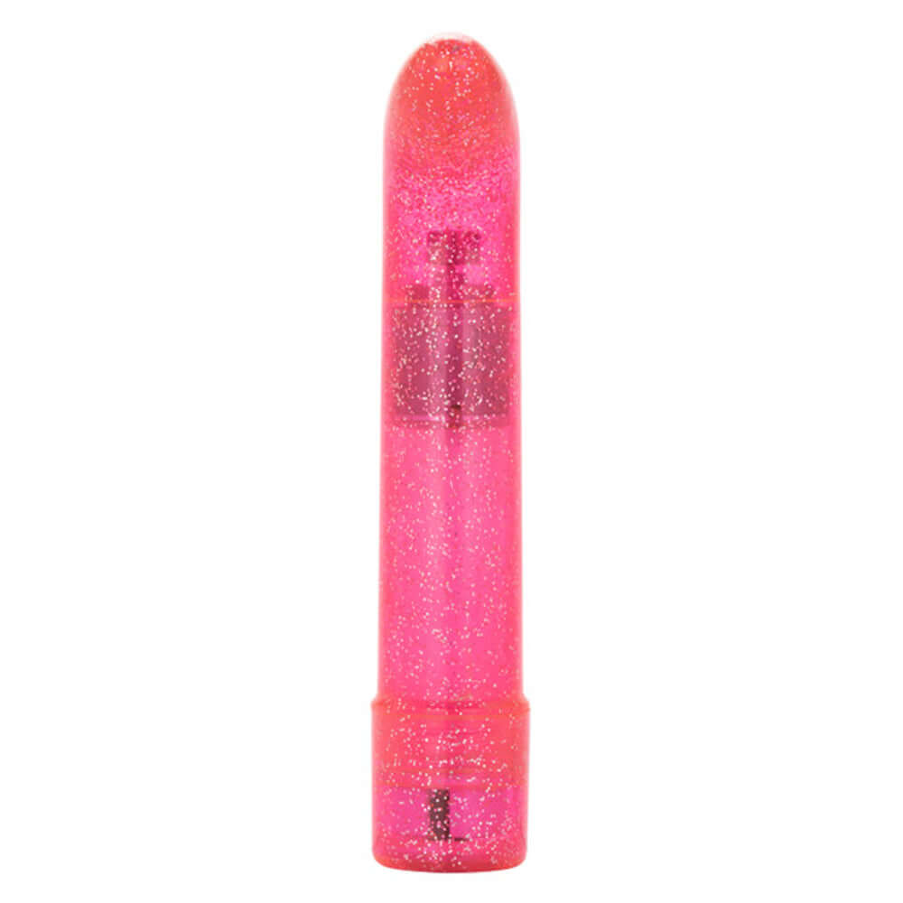Whether you’re taking a dip with a lover or indulging in a steamy solo session, alluring adventure await you with this dazzling vibrator. Plunge into total ecstasy as this orgasmic vibe rubs, tickles and teases. The playful vibe is made from a smooth ABS plastic with sparkly glitter finish and silicone button. Power up your pleasure with a single AA battery.