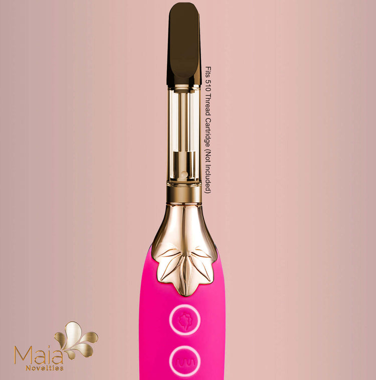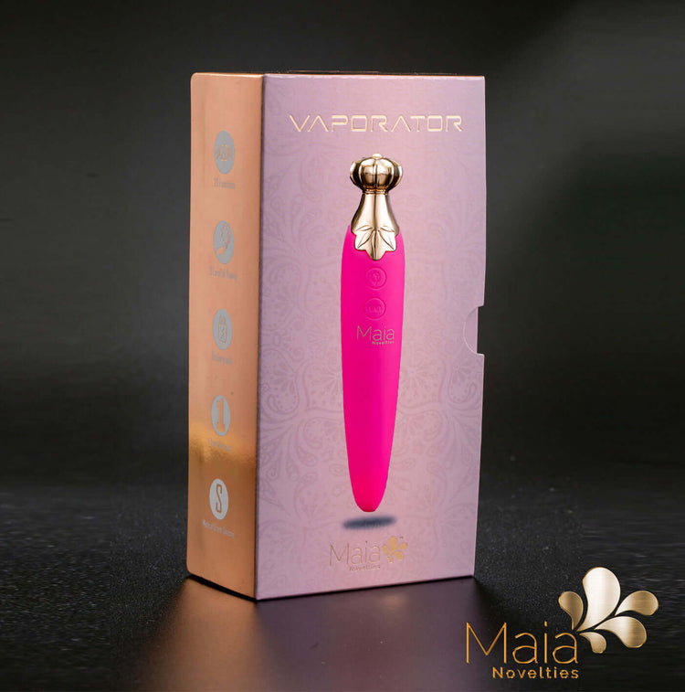 Introducing the Maia Novelties Vaporator. With 20 vibrating functions, the Vaporator is a powerful, travel sized vibe. Add your favorite cartridge and the Vaporator becomes your control. Vaporator is covered in 100% body safe Silicone and is rechargeable. Plus the Vaporator is waterproof with an IPX4 rating.