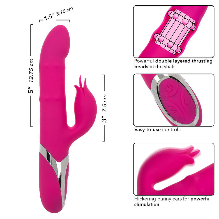 Step into a world of rhythmic pleasure with the enchanted embrace, a powerful and innovative dual stimulator designed to provide an unparalleled sensory experience. This unique pleasure tool stands out with its double-layered beads in the shaft, offering a depth of stimulation that is both intense and gratifying.