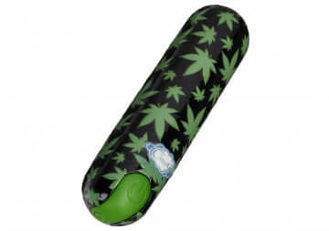 420 Personal Vibrator Stubby Vibe Black Cannabis Leaf from Cloud 9 Novelties. Celebrate the cannabis culture with a discreet and petite rechargeable bullet vibrator. This uniquely patterned Cloud 9 Novelty 420 Vibrator features 10 speeds of vibration patterns and an ergonomic shape the 420 Vibe features a powerful motor. Perfect when on the go. This Vibe is silky smooth with a velvet feel for comfort. The strong motor delivers intense vibrations that will take you to new heights. Features: body safe and phthalate free. Rechargeable USB cable included. Glows in the dark.