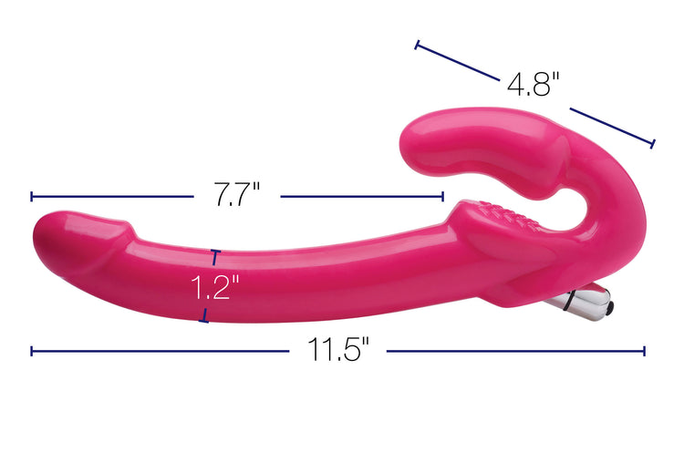 The powerful bullet vibe easily slips into the cavity of this strap-on dong to give both the wearer and the partner 3 speeds and 4 patterns of intense vibration. Flip through each function with the on-board power button and find which pattern suits your play style!