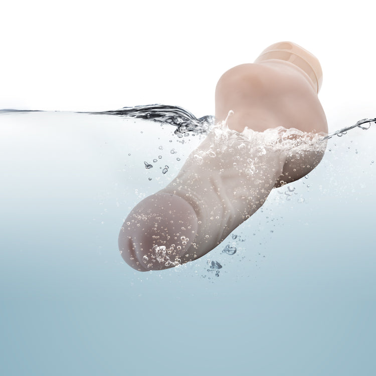 Blush Novelties' Dr. Skin Vibe #12 is an 8-inch realistic vibrator with a slim shaft and thick bottom. It's perfect for anal penetration as the protruding base prevents "over insertion."