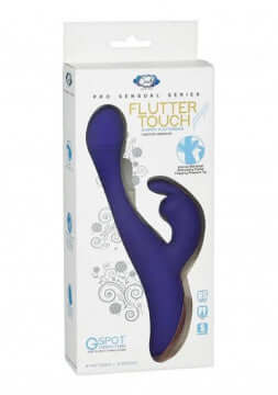 Discover the unique sensations of an intense three motor vibrator with a fluttering stimulator for G-Spot stimulation. The central shaft of this vibrator is designed with a tongue like flapping feature, created to mimic the sensations of a finger. This rabbit is ergonomically shaped to target the G-Spot and deliver strong, stimulating pulsations for ultimate pleasure. This Flutter Touch Rabbit allows for individual control of 3 unique pleasure motors: one located at the tip, one at the clitoris, and one mid-shaft fluttering tip. This vibrating massager is USB charged and includes a magnetic charging cable.