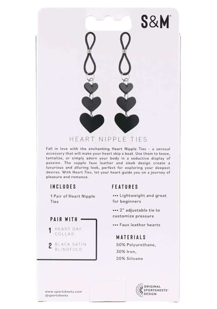 Fall in love with the enchanting Heart Nipple Ties - a sensual accessory that will make your heart skip a beat. Use them to tease, tantalize, or simply adorn your body in a seductive display of passion. The supple faux leather and sleek design create a luxurious and alluring look, perfect for exploring your deepest desires. With Heart Ties, let your heart guide you on a journey of pleasure and romance.