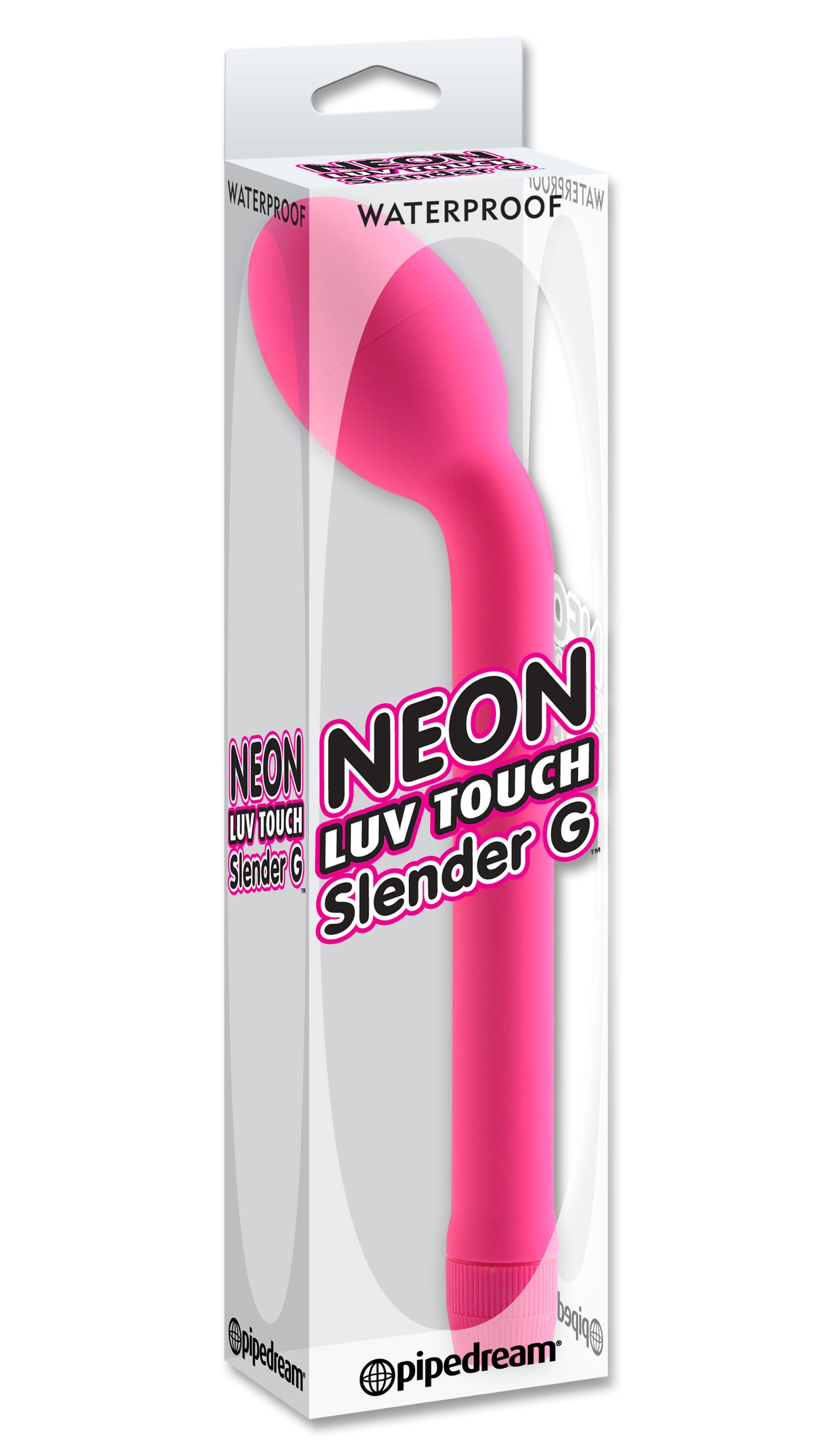 Get just the right touch of satisfaction with this incredible Neon Slender G Vibe. Lined with our super-silky Luv Touch coating this powerful multi-speed vibe has an ergonomically curved tip for amazing g-spot stimulation. Choose a speed thats right for you and let the silent vibrations whisk you away. Try it on the shower or spa and turn bath time into pleasure time.