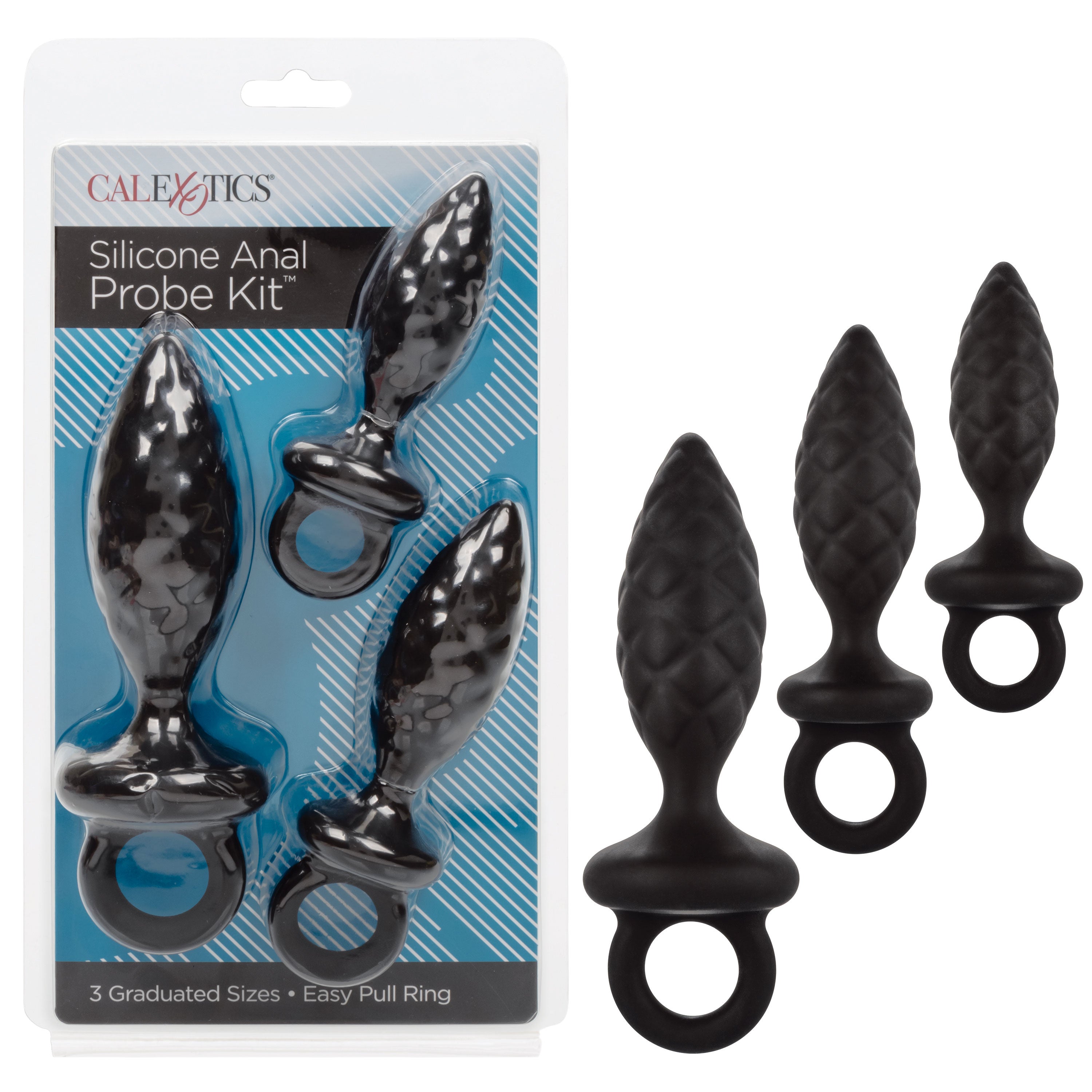 Open the door of thrilling anal sensation with the Silicone Anal Probe Kit. This thrilling anal training kit includes a set of 3 graduated anal plugs with easy pull ring and incredible textured surface. To enjoy everything the exhilarating world of anal play has to offer, training is in order to ensure total safety and satisfaction. Each probe in our kit gradually increases in length and girth for superb pleasure at any level of pleasure play.