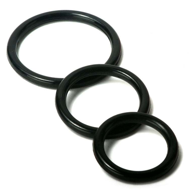 This cock ring set offers three different sized cock rings. Not sure what size you need or what might feel most comfortable? Then this is an inexpensive way to find out. Silicone has more give than other materials and tends to be comfortable.